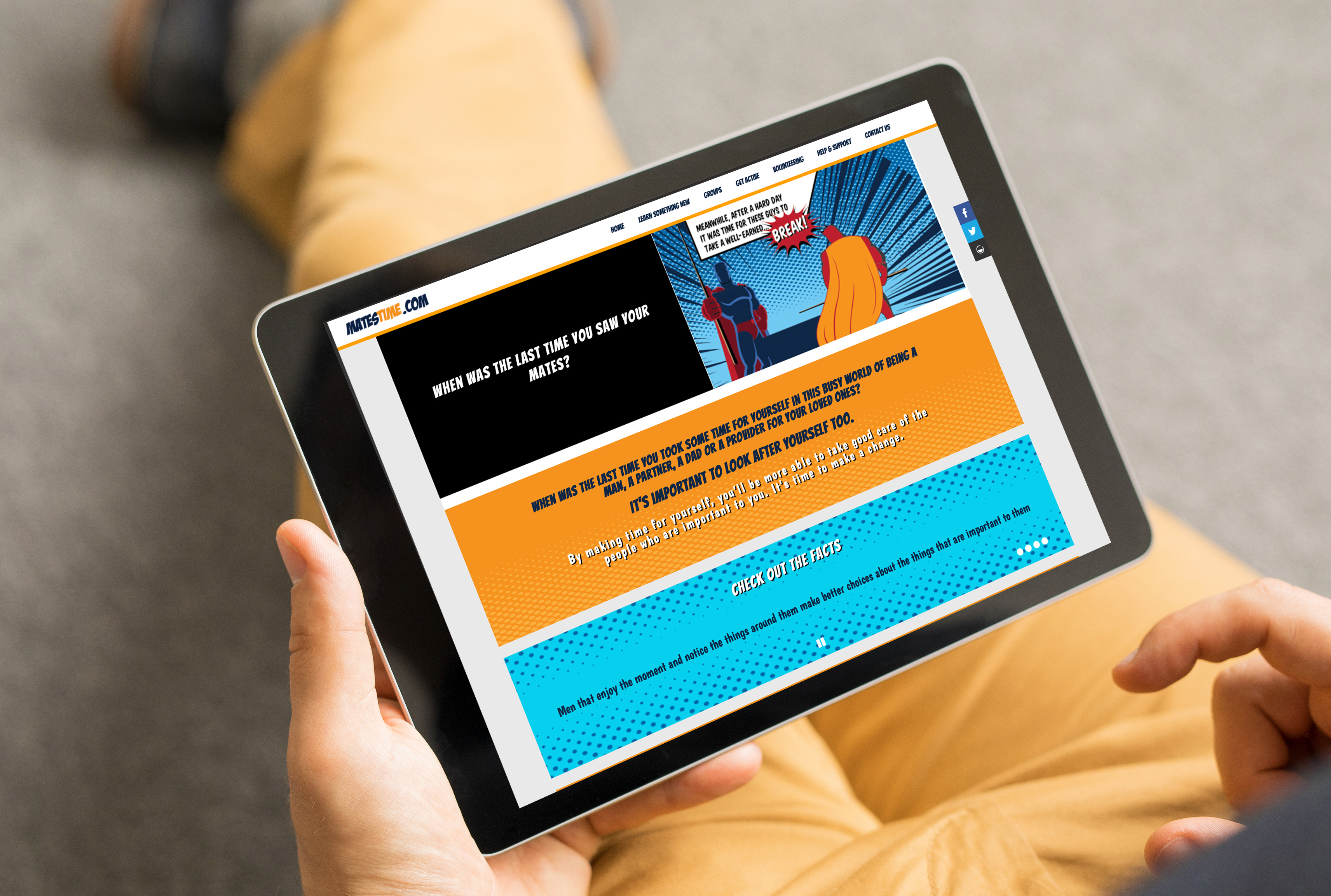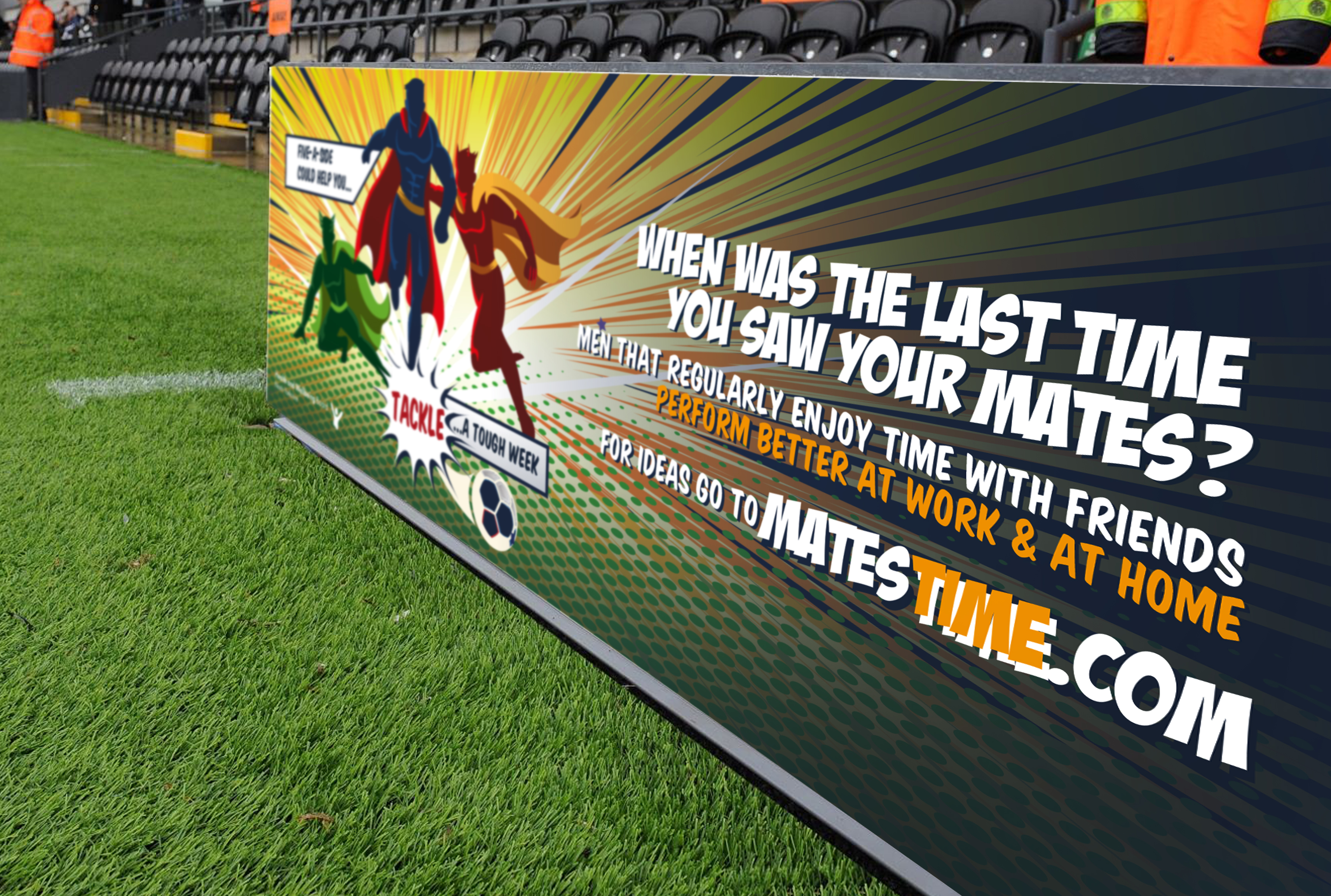 We shaped messages to give men ideas and aspirations for activities they could do linked to the ‘Five Ways to Wellbeing’: connecting with friends, being active and learning new skills. The messages did not overtly focus on mental health and wellbeing but instead asked questions like “When was the last time you saw your mates?” to subconsciously prime men to consider the message without directly ‘telling them what to do’. The importance of this approach was cemented by men who’d previously experienced mental health challenges saying direct messaging about mental wellbeing would not incentivise them to act. The campaign used retro-style imagery of superhero figures to evoke feelings of nostalgia and humour which tested well with the target audience.